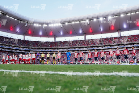 Zapopan, Jalisco, 25 de abril de 2026. Protocolo, durante el partido correspondiente a la jornada 17 del torneo Clausura 2026 de la Liga BBVA MX, entre las Chivas Rayadas del Guadalajara y los Xolos de Tijuana, realizado en el estadio Akron. Foto: Imago7/ Juan Carlos Cuebeyro