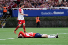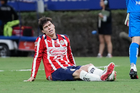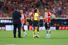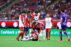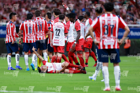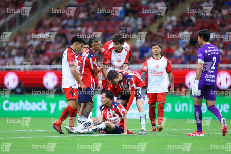 Zapopan, Jalisco, 25 de abril de 2026. Hugo Camberos resultó lesionado, durante el partido correspondiente a la jornada 17 del torneo Clausura 2026 de la Liga BBVA MX, entre las Chivas Rayadas del Guadalajara y los Xolos de Tijuana, realizado en el estadio Akron. Foto: Imago7/ Juan Carlos Cuebeyro