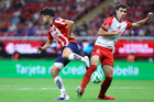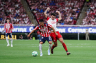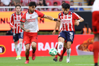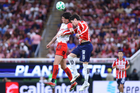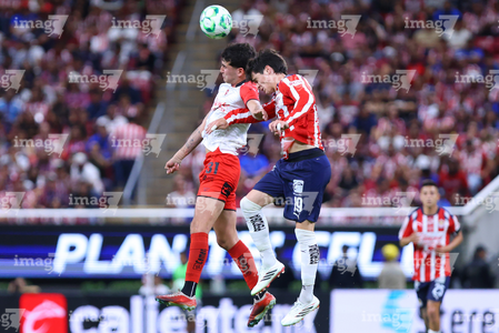 Zapopan, Jalisco, 25 de abril de 2026. Armando González y Jesús Gómez, durante el partido correspondiente a la jornada 17 del torneo Clausura 2026 de la Liga BBVA MX, entre las Chivas Rayadas del Guadalajara y los Xolos de Tijuana, realizado en el estadio Akron. Foto: Imago7/ Juan Carlos Cuebeyro