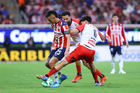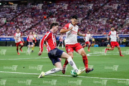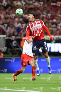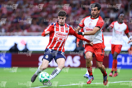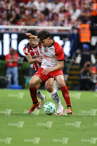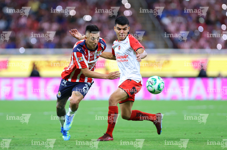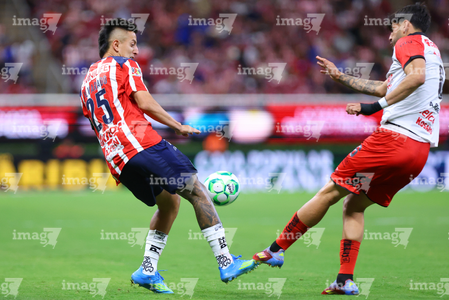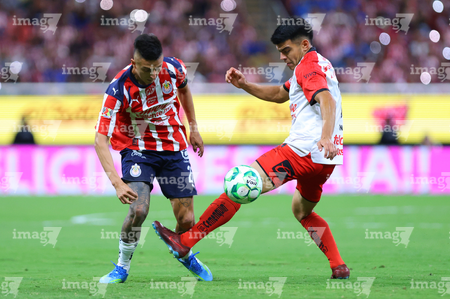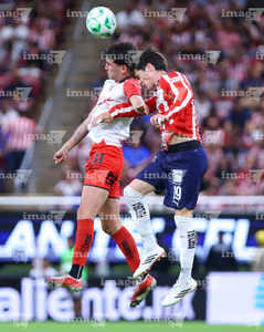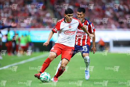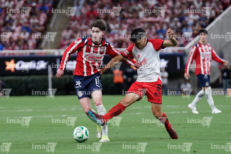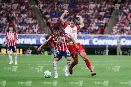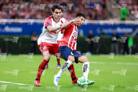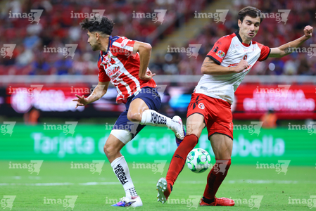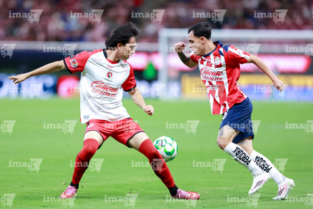 Zapopan, Jalisco, 25 de abril de 2026. Roberto Alvarado "Piojo" e Iván Tona, durante el partido correspondiente a la jornada 17 del torneo Clausura 2026 de la Liga BBVA MX, entre las Chivas Rayadas del Guadalajara y los Xolos de Tijuana, realizado en el estadio Akron. Foto: Imago7/ Juan Carlos Cuebeyro