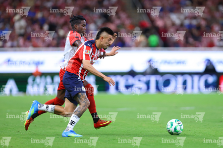 Zapopan, Jalisco, 25 de abril de 2026. Richard Ledezma y Gilberto Mora, durante el partido correspondiente a la jornada 17 del torneo Clausura 2026 de la Liga BBVA MX, entre las Chivas Rayadas del Guadalajara y los Xolos de Tijuana, realizado en el estadio Akron. Foto: Imago7/ Juan Carlos Cuebeyro