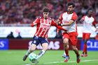 Zapopan, Jalisco, 25 de abril de 2026. Efraín Álvarez, durante el partido correspondiente a la jornada 17 del torneo Clausura 2026 de la Liga BBVA MX, entre las Chivas Rayadas del Guadalajara y los Xolos de Tijuana, realizado en el estadio Akron. Foto: Imago7/ Juan Carlos Cuebeyro