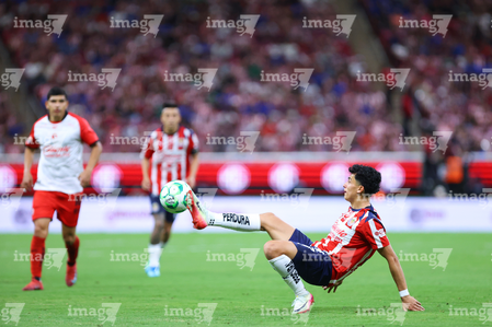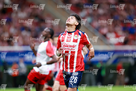 Zapopan, Jalisco, 25 de abril de 2026. Kevin Castañeda, durante el partido correspondiente a la jornada 17 del torneo Clausura 2026 de la Liga BBVA MX, entre las Chivas Rayadas del Guadalajara y los Xolos de Tijuana, realizado en el estadio Akron. Foto: Imago7/Cristian Hernandez