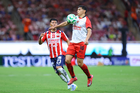 Zapopan, Jalisco, 25 de abril de 2026. Efraín Álvarez y Antonio Rodriguez , durante el partido correspondiente a la jornada 17 del torneo Clausura 2026 de la Liga BBVA MX, entre las Chivas Rayadas del Guadalajara y los Xolos de Tijuana, realizado en el estadio Akron. Foto: Imago7/Cristian Hernandez