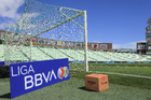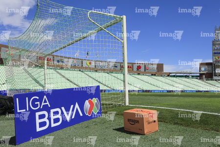 Torreón, Coahuila, 26 de abril de 2026. Portigoles y caja de Amazon, durante el partido correspondiente a la jornada 17 del torneo Clausura 2026 de la Liga BBVA MX, entre los Guerreros de Santos Laguna y los Rayados del Monterrey, realizado en el estadio Corona. Foto: Imago7/