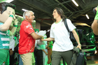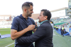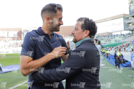 Torreón, Coahuila, 26 de abril de 2026. Nicolás Sánchez, director técnico interino y Omar Tapia, director técnico, durante el partido correspondiente a la jornada 17 del torneo Clausura 2026 de la Liga BBVA MX, entre los Guerreros de Santos Laguna y los Rayados del Monterrey, realizado en el estadio Corona. Foto: Imago7/ Saul Perales