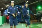 Torreón, Coahuila, 26 de abril de 2026. Ezequiel Bullaude y Santiago Mele, durante el partido correspondiente a la jornada 17 del torneo Clausura 2026 de la Liga BBVA MX, entre los Guerreros de Santos Laguna y los Rayados del Monterrey, realizado en el estadio Corona. Foto: Imago7/ Erick Saavedra