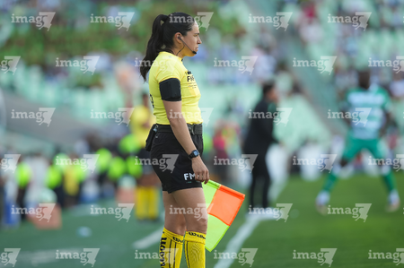 Torreón, Coahuila, 26 de abril de 2026. Karen Díaz, árbitra asistente, durante el partido correspondiente a la jornada 17 del torneo Clausura 2026 de la Liga BBVA MX, entre los Guerreros de Santos Laguna y los Rayados del Monterrey, realizado en el estadio Corona. Foto: Imago7/ Erick Saavedra