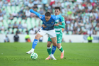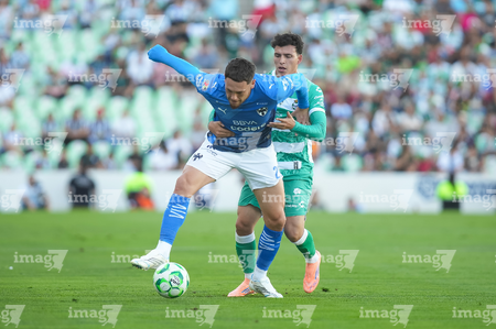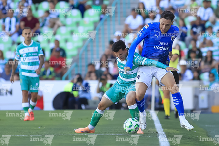 Torreón, Coahuila, 26 de abril de 2026. Lucas Ocampos y Tahiel Jiménez, durante el partido correspondiente a la jornada 17 del torneo Clausura 2026 de la Liga BBVA MX, entre los Guerreros de Santos Laguna y los Rayados del Monterrey, realizado en el estadio Corona. Foto: Imago7/ Saul Perales