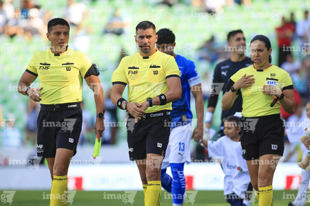 Torreón, Coahuila, 26 de abril de 2026. Árbitros, durante el partido correspondiente a la jornada 17 del torneo Clausura 2026 de la Liga BBVA MX, entre los Guerreros de Santos Laguna y los Rayados del Monterrey, realizado en el estadio Corona. Foto: Imago7/ Saul Perales