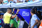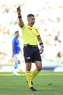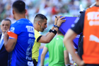 Torreón, Coahuila, 26 de abril de 2026. Abraham de Jesús Quirarte, árbitro central muestra tarjeta amarilla de amonestación, durante el partido correspondiente a la jornada 17 del torneo Clausura 2026 de la Liga BBVA MX, entre los Guerreros de Santos Laguna y los Rayados del Monterrey, realizado en el estadio Corona. Foto: Imago7/ Saul Perales