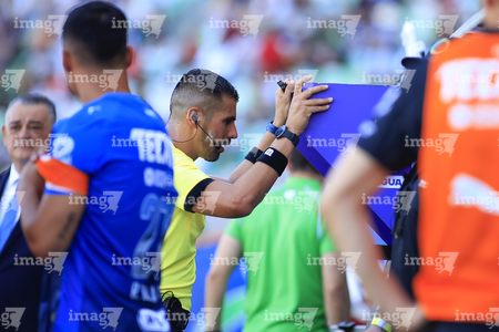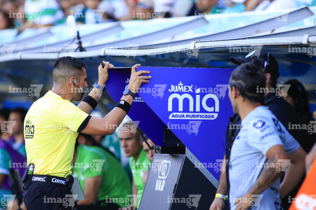 Torreón, Coahuila, 26 de abril de 2026. Torreón, Coahuila, 26 de abril de 2026. Abraham de Jesús Quirarte, árbitro central consulta el sistema de video asistente del árbitro VAR, durante el partido correspondiente a la jornada 17 del torneo Clausura 2026 de la Liga BBVA MX, entre los Guerreros de Santos Laguna y los Rayados del Monterrey, realizado en el estadio Corona. Foto: Imago7/ Saul Perales, durante el partido correspondiente a la jornada 17 del torneo Clausura 2026 de la Liga BBVA MX, entre los Guerreros de Santos Laguna y los Rayados del Monterrey, realizado en el estadio Corona. Foto: Imago7/ Saul Perales