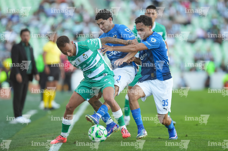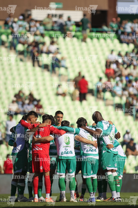 Torreón, Coahuila, 26 de abril de 2026. Jugadores del Santos Laguna, durante el partido correspondiente a la jornada 17 del torneo Clausura 2026 de la Liga BBVA MX, entre los Guerreros de Santos Laguna y los Rayados del Monterrey, realizado en el estadio Corona. Foto: Imago7/ Saul Perales