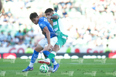 Torreón, Coahuila, 26 de abril de 2026. Tahiel Jiménez y Lucas Ocampos, durante el partido correspondiente a la jornada 17 del torneo Clausura 2026 de la Liga BBVA MX, entre los Guerreros de Santos Laguna y los Rayados del Monterrey, realizado en el estadio Corona. Foto: Imago7/ Saul Perales