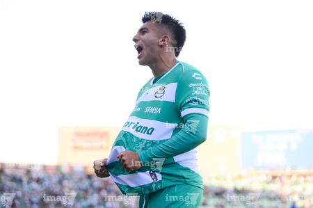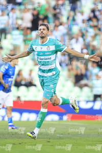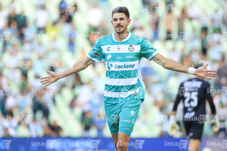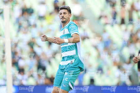 Torreón, Coahuila, 26 de abril de 2026. Lucas Di Yorio en festejo de gol, durante el partido correspondiente a la jornada 17 del torneo Clausura 2026 de la Liga BBVA MX, entre los Guerreros de Santos Laguna y los Rayados del Monterrey, realizado en el estadio Corona. Foto: Imago7/ Saul Perales
