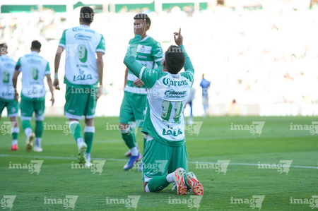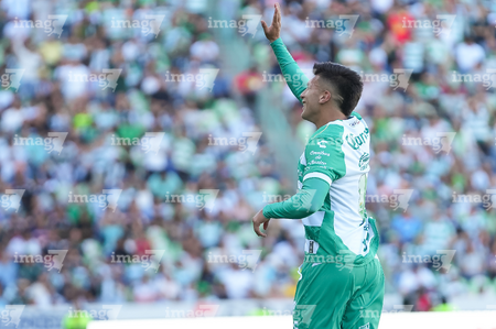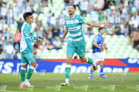 Torreón, Coahuila, 26 de abril de 2026. Emmanuel Echeverría en festejo de gol, durante el partido correspondiente a la jornada 17 del torneo Clausura 2026 de la Liga BBVA MX, entre los Guerreros de Santos Laguna y los Rayados del Monterrey, realizado en el estadio Corona. Foto: Imago7/ Erick Saavedra