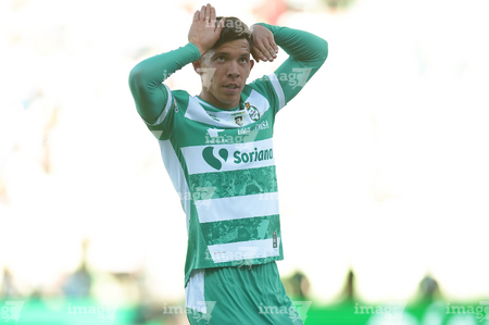 Torreón, Coahuila, 26 de abril de 2026. Héctor Holguín en festejo, durante el partido correspondiente a la jornada 17 del torneo Clausura 2026 de la Liga BBVA MX, entre los Guerreros de Santos Laguna y los Rayados del Monterrey, realizado en el estadio Corona. Foto: Imago7/ Erick Saavedra