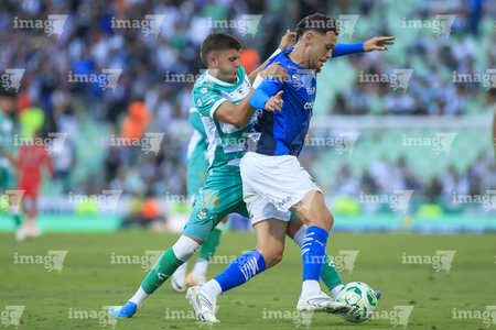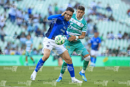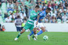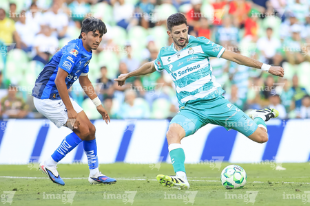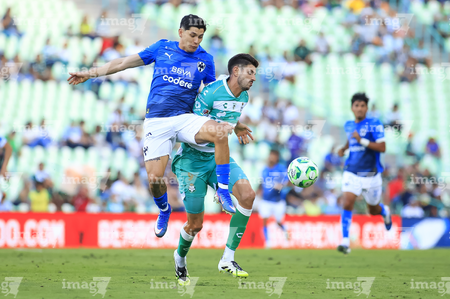 Torreón, Coahuila, 26 de abril de 2026. Lucas Ocampos y Javier Güemez, durante el partido correspondiente a la jornada 17 del torneo Clausura 2026 de la Liga BBVA MX, entre los Guerreros de Santos Laguna y los Rayados del Monterrey, realizado en el estadio Corona. Foto: Imago7/ Saul Perales