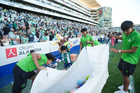 Torreón, Coahuila, 26 de abril de 2026. Embajadores, durante el partido correspondiente a la jornada 17 del torneo Clausura 2026 de la Liga BBVA MX, entre los Guerreros de Santos Laguna y los Rayados del Monterrey, realizado en el estadio Corona. Foto: Imago7/ Saul Perales