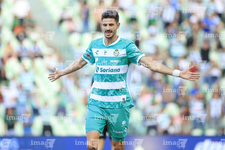 Torreón, Coahuila, 26 de abril de 2026. Santiago Mele en festejo de gol anulado, durante el partido correspondiente a la jornada 17 del torneo Clausura 2026 de la Liga BBVA MX, entre los Guerreros de Santos Laguna y los Rayados del Monterrey, realizado en el estadio Corona. Foto: Imago7/ Erick Saavedra
