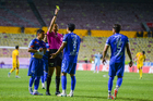 Morelia, Michoacan, 10 de enero de 2026. José Luis Alba Dorado muestra tarjeta amarilla de amonestación, durante el partido correspondiente a la jornada 1 del torneo Clausura 2026 de la Liga BBVA Expansión MX, entre Atlético Morelia y los Correcaminos de la UAT, realizado en el estadio Morelos. Foto: Imago7/ Janik Frías