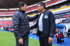Guadalajara, Jalisco, 11 de enero de 2026. Alfonso Sosa, director técnico y Marco Ruíz, director técnico, durante el partido correspondiente a la jornada 1 del torneo Clausura 2026 de la Liga BBVA Expansión MX, entre los Leones Negros de la UDG y la Jaiba Brava del Tampico Madero, realizado en el estadio Jalisco. Foto: Imago7/ Juan Carlos Cubeyro.