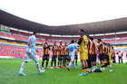 Guadalajara, Jalisco, 11 de enero de 2026. Pasillo al campeón Jaiba Brava, durante el partido correspondiente a la jornada 1 del torneo Clausura 2026 de la Liga BBVA Expansión MX, entre los Leones Negros de la UDG y la Jaiba Brava del Tampico Madero, realizado en el estadio Jalisco. Foto: Imago7/ Juan Carlos Cubeyro.