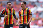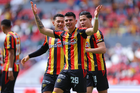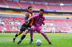 Guadalajara, Jalisco, 11 de enero de 2026. René López y Luis Razo, durante el partido correspondiente a la jornada 1 del torneo Clausura 2026 de la Liga BBVA Expansión MX, entre los Leones Negros de la UDG y la Jaiba Brava del Tampico Madero, realizado en el estadio Jalisco. Foto: Imago7/ Hugo Ramirez