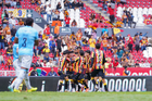 Guadalajara, Jalisco, 11 de enero de 2026. Jugadores de UDG en festejo de gol, durante el partido correspondiente a la jornada 1 del torneo Clausura 2026 de la Liga BBVA Expansión MX, entre los Leones Negros de la UDG y la Jaiba Brava del Tampico Madero, realizado en el estadio Jalisco. Foto: Imago7/ Hugo Ramirez