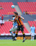 Guadalajara, Jalisco, 11 de enero de 2026. Denilson Muñoz y Diego García, durante el partido correspondiente a la jornada 1 del torneo Clausura 2026 de la Liga BBVA Expansión MX, entre los Leones Negros de la UDG y la Jaiba Brava del Tampico Madero, realizado en el estadio Jalisco. Foto: Imago7/ Juan Carlos Cubeyro.