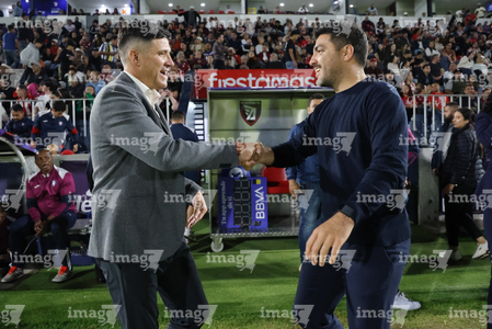 Tepatitlán, Jalisco, 23 de enero del 2026. Gabriel Pereyra, director técnico y José Meléndez, director técnico, durante el partido correspondiente a la jornada 3 del torneo Clausura 2026 de la Liga BBVA Expansión MX, entre los Alteños de Tepatitlán FC y el CD Tapatío, realizado en el estadio “Tepa” Gómez. Foto: Imago7/ Juan Carlos Cubeyro.