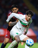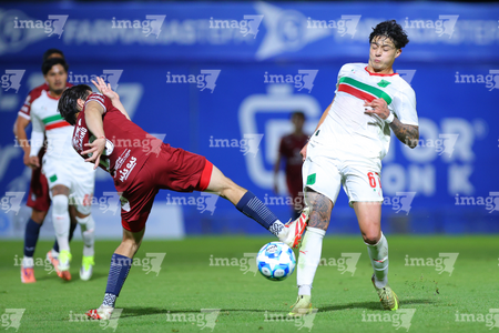 Tepatitlán, Jalisco, 23 de enero del 2026. Luis Egurrola y Josué Gómez, durante el partido correspondiente a la jornada 3 del torneo Clausura 2026 de la Liga BBVA Expansión MX, entre los Alteños de Tepatitlán FC y el CD Tapatío, realizado en el estadio “Tepa” Gómez. Foto: Imago7/ Juan Carlos Cubeyro.
