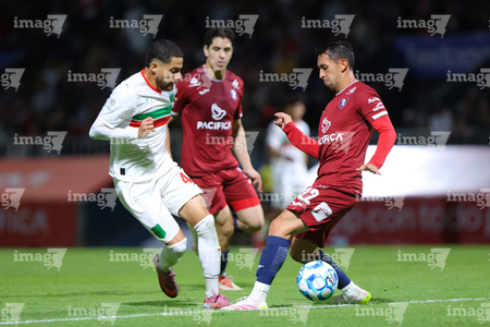 Tepatitlán, Jalisco, 23 de enero del 2026. Alan Ruiz y Sergio Aguayo, durante el partido correspondiente a la jornada 3 del torneo Clausura 2026 de la Liga BBVA Expansión MX, entre los Alteños de Tepatitlán FC y el CD Tapatío, realizado en el estadio “Tepa” Gómez. Foto: Imago7/ Juan Carlos Cubeyro.