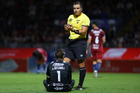 Tepatitlán, Jalisco, 23 de enero del 2026. Julio César Gil, árbitro central, durante el partido correspondiente a la jornada 3 del torneo Clausura 2026 de la Liga BBVA Expansión MX, entre los Alteños de Tepatitlán FC y el CD Tapatío, realizado en el estadio “Tepa” Gómez. Foto: Imago7/ Juan Carlos Cubeyro.
