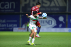 Tepatitlán, Jalisco, 23 de enero del 2026. Alan Ruiz y Jesús Hernández, durante el partido correspondiente a la jornada 3 del torneo Clausura 2026 de la Liga BBVA Expansión MX, entre los Alteños de Tepatitlán FC y el CD Tapatío, realizado en el estadio “Tepa” Gómez. Foto: Imago7/ Juan Carlos Cubeyro.
