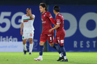 Tepatitlán, Jalisco, 23 de enero del 2026. Gustavo Gutiérrez y Idekel Domínguez en festejo, durante el partido correspondiente a la jornada 3 del torneo Clausura 2026 de la Liga BBVA Expansión MX, entre los Alteños de Tepatitlán FC y el CD Tapatío, realizado en el estadio “Tepa” Gómez. Foto: Imago7/ Juan Carlos Cubeyro.