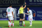 Tepatitlán, Jalisco, 23 de enero del 2026. Julio César Gil, árbitro central, muestra tarjeta roja de expulsión a Luis Ledesma, durante el partido correspondiente a la jornada 3 del torneo Clausura 2026 de la Liga BBVA Expansión MX, entre los Alteños de Tepatitlán FC y el CD Tapatío, realizado en el estadio “Tepa” Gómez. Foto: Imago7/ Juan Carlos Cubeyro.
