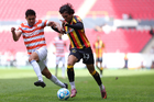 Guadalajara, Jalisco, 25 de enero de 2026. José Galindo y Juan Brigido, durante el partido correspondiente a la jornada 3 del torneo Clausura 2026 de la Liga BBVA Expansión MX, entre los Leones Negros de la UDG y los Correcaminos de la UAT, realizado en el estadio Jalisco. Foto: Imago7/Richard Vogel