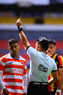 Guadalajara, Jalisco, 25 de enero de 2026. Jaime Orlando Montes Santos, árbitro central, durante el partido correspondiente a la jornada 3 del torneo Clausura 2026 de la Liga BBVA Expansión MX, entre los Leones Negros de la UDG y los Correcaminos de la UAT, realizado en el estadio Jalisco. Foto: Imago7/Cristian Hernandez