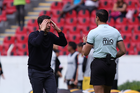Guadalajara, Jalisco, 25 de enero de 2026. Gustavo Díaz, Director técnico, en reclamo durante el partido correspondiente a la jornada 3 del torneo Clausura 2026 de la Liga BBVA Expansión MX, entre los Leones Negros de la UDG y los Correcaminos de la UAT, realizado en el estadio Jalisco. Foto: Imago7/Cristian Hernandez