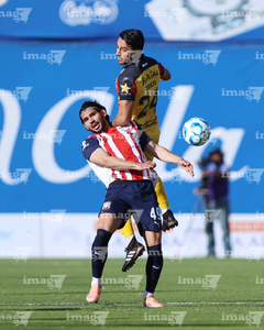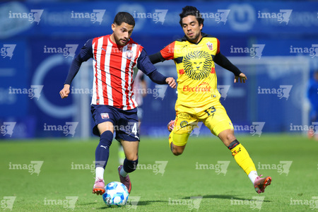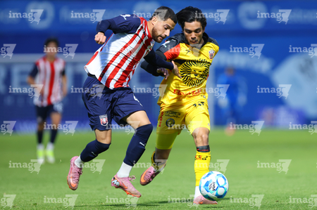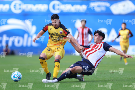 Tepatitlán, Jalisco, 30 de enero del 2026. Saúl Zamora y Juan Aguayo, durante el partido correspondiente a la jornada 4 del torneo Clausura 2026 de la Liga BBVA Expansión MX, entre el CD Tapatío y los Leones Negros de la UDG, realizado en el estadio “Tepa” Gómez. Foto: Imago7/ Juan Carlos Cubeyro.