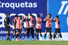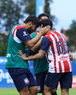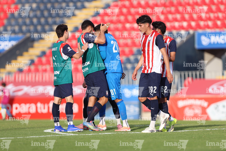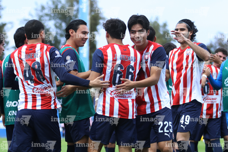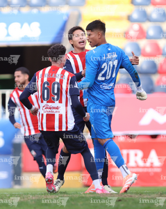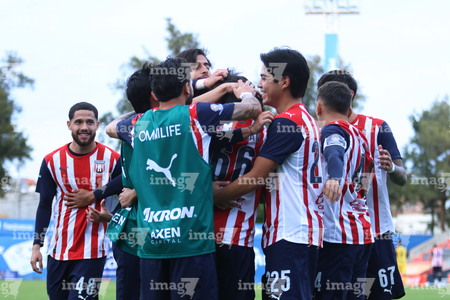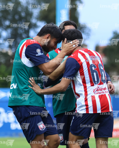 Tepatitlán, Jalisco, 30 de enero del 2026. Jugadores de Chivas en festejo de gol, durante el partido correspondiente a la jornada 4 del torneo Clausura 2026 de la Liga BBVA Expansión MX, entre el CD Tapatío y los Leones Negros de la UDG, realizado en el estadio “Tepa” Gómez. Foto: Imago7/ Juan Carlos Cubeyro.
