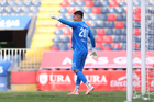 Tepatitlán, Jalisco, 30 de enero del 2026. Juan Liceaga en festejo tras atajar penal, durante el partido correspondiente a la jornada 4 del torneo Clausura 2026 de la Liga BBVA Expansión MX, entre el CD Tapatío y los Leones Negros de la UDG, realizado en el estadio “Tepa” Gómez. Foto: Imago7/ Juan Carlos Cubeyro.