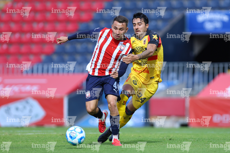 Tepatitlán, Jalisco, 30 de enero del 2026. Leonardo Jiménez y René López, durante el partido correspondiente a la jornada 4 del torneo Clausura 2026 de la Liga BBVA Expansión MX, entre el CD Tapatío y los Leones Negros de la UDG, realizado en el estadio “Tepa” Gómez. Foto: Imago7/ Juan Carlos Cubeyro.