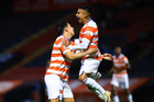 Tepatitlán, Jalisco, 06 de febrero del 2026. Josué Gómez y Nahúm Gómez, durante el partido correspondiente a la jornada 5 del torneo Clausura 2026 de la Liga BBVA Expansión MX, entre los Alteños de Tepatitlán FC y los Correcaminos de la UAT, realizado en el estadio "Tepa" Gómez. Foto: Imago7/Richard Vogel