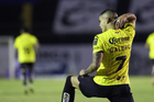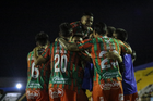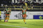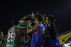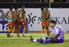 Mérida, Yucatán, 6 de febrero de 2026. Jugadores de Alebrijes en festejo, durante el partido correspondiente a la jornada 5 del torneo Clausura 2026 de la Liga BBVA Expansión MX, entre los Venados de Merida y los Alebrijes de Oaxaca, realizado en el estadio Carlos Iturralde Rivero. Foto: Imago7/ Constantino Cruz