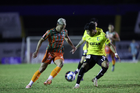 Mérida, Yucatán, 6 de febrero de 2026. Harold Vázquez y Jonathan Martínez, durante el partido correspondiente a la jornada 5 del torneo Clausura 2026 de la Liga BBVA Expansión MX, entre los Venados de Merida y los Alebrijes de Oaxaca, realizado en el estadio Carlos Iturralde Rivero. Foto: Imago7/ Jorge Peña