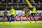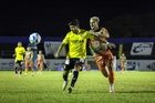 Mérida, Yucatán, 6 de febrero de 2026. Bubakarry Fadika y Sebastian Saucedo, durante el partido correspondiente a la jornada 5 del torneo Clausura 2026 de la Liga BBVA Expansión MX, entre los Venados de Merida y los Alebrijes de Oaxaca, realizado en el estadio Carlos Iturralde Rivero. Foto: Imago7/ Jorge Peña