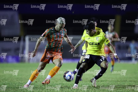 Mérida, Yucatán, 6 de febrero de 2026. Jonathan Martínez y Harold Vázquez, durante el partido correspondiente a la jornada 5 del torneo Clausura 2026 de la Liga BBVA Expansión MX, entre los Venados de Merida y los Alebrijes de Oaxaca, realizado en el estadio Carlos Iturralde Rivero. Foto: Imago7/ Jorge Peña