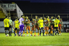 Mérida, Yucatán, 6 de febrero de 2026. Jugadores de Alebrijes y Jugadores de Venados en conato de bronca, durante el partido correspondiente a la jornada 5 del torneo Clausura 2026 de la Liga BBVA Expansión MX, entre los Venados de Merida y los Alebrijes de Oaxaca, realizado en el estadio Carlos Iturralde Rivero. Foto: Imago7/ Constantino Cruz